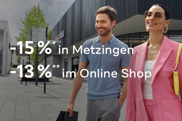 15% (1) Rabatt in Metzingen & 13% (2) Rabatt im Outletcity Online Shop