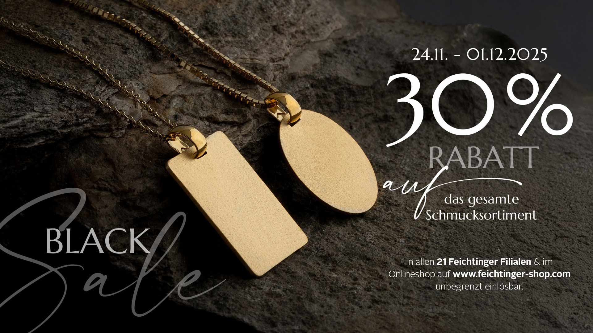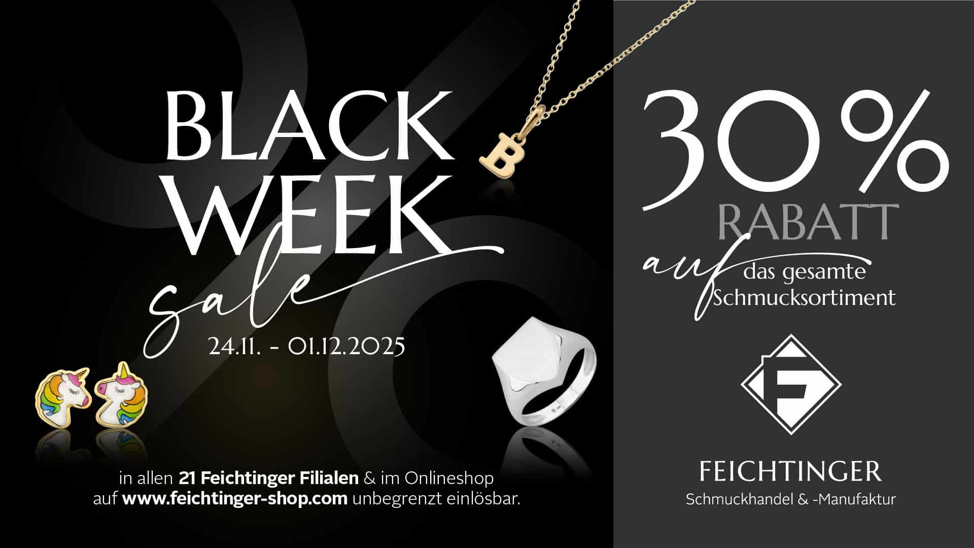 *Gültig in allen Feichtinger Filialen sowie im Online-Shop. Nicht kombinierbar mit anderen Rabatten oder Aktionen. Ausgenommen Ringe mit Brillanten größer als 0,49 ct.